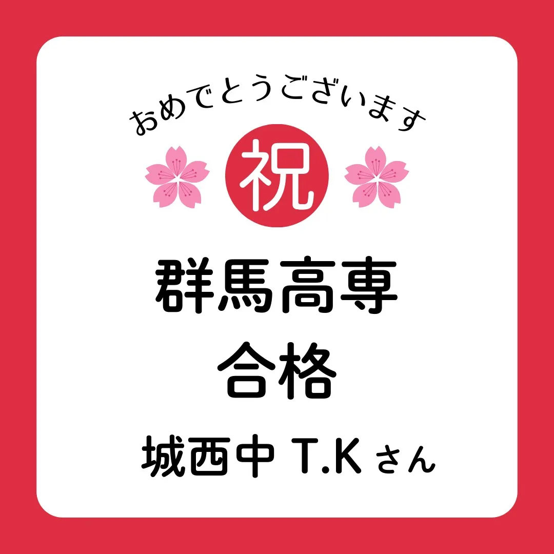 当校に通塾の城西中学校3年生の生徒が群馬高専に合格しました!おめでとうございます!